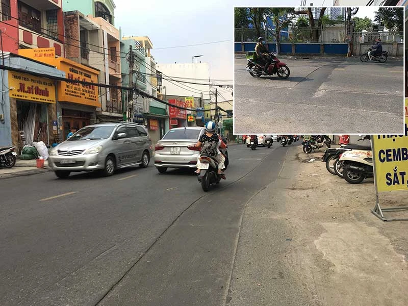 Tương tự, mặt đường Phổ Quang (quận Tân Bình) cũng lồi lõm, gồ ghề do việc tái lập mặt bằng cẩu thả của các đơn vị thi công. Chị Anh Thư, người dân khu vực chia sẻ: “Nhiều lúc đi không để ý nên bánh xe lọt xuống chỗ lằn rãnh làm tôi giật mình, chao đảo rồi xém té. Nhất là đường này lại nhiều khúc cua ngoằn ngoèo rất khó kiểm soát tay lái”.
