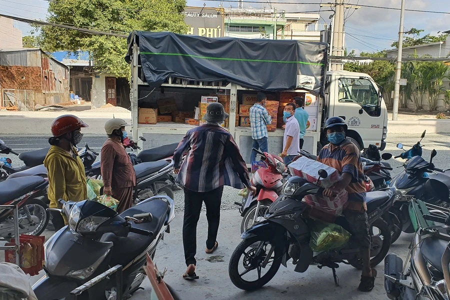 Tại chợ đầu mối phường 7, TP. Cà Mau, người dân chen chúc đi mua rau, củ, thịt, cá. Ở các cửa hàng bách hóa trong toàn thành phố khách đông đúc bất thường. Khách hàng mua chủ yếu các mặt hàng gạo, mỳ gói, cà phê, nhu yếu phẩm thiết yếu.