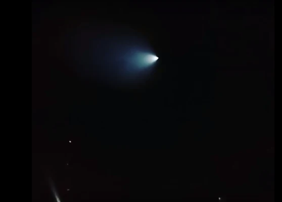 Đuôi của vật thể không xác định này phát ra ba màu trắng, xanh lá, xanh dương. (Ảnh chụp từ clip)