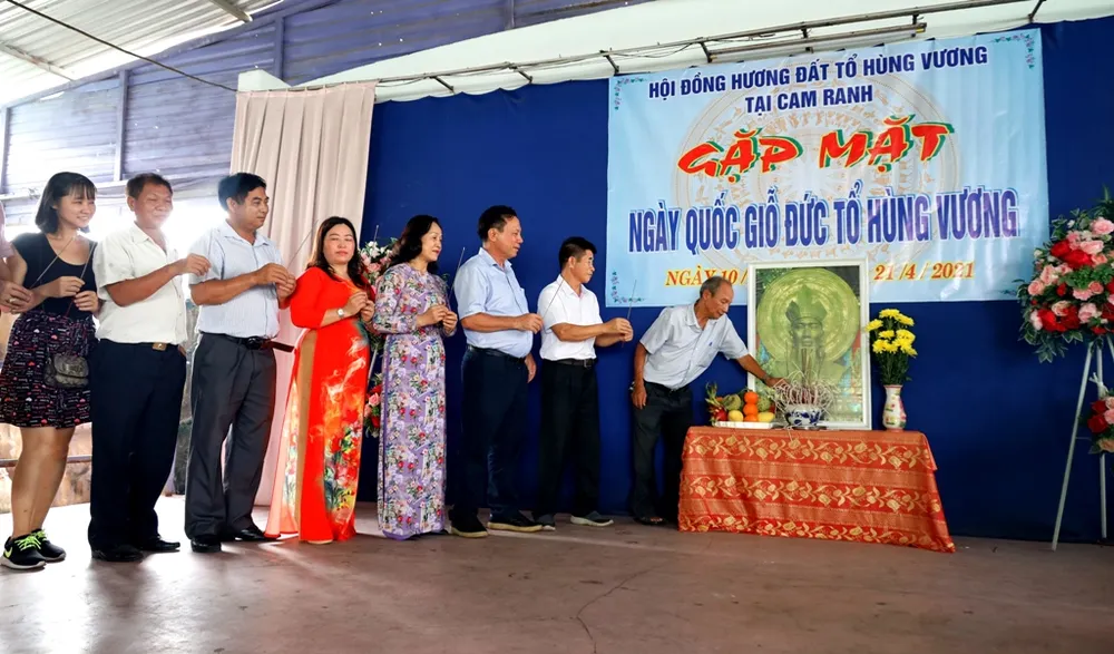 Ông Nguyễn Ngọc Loan, Trưởng ban liên lạc Hội đồng hương đất Tổ tại Cam Ranh, Cam Lâm và huyện đảo Trường Sa, đã ôn lại lịch sử hào hùng về quê cha đất tổ, động viên thế hệ trẻ luôn hướng về đất Tổ và tiếp bước xứng danh con cháu Vua Hùng, góp phần xây dựng quê hương ngày càng giàu đẹp.