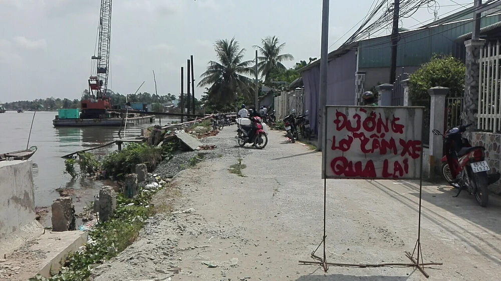 Khu vực sạt lở đang thi công dự án kè chống sạt lở sông Ô Môn.
