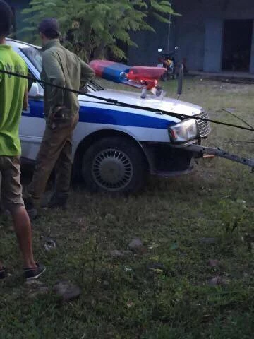 Khi chiếc xe bán tải rồ ga bỏ chạy, lực lượng chức năng lập tức dùng ô tô chuyên dụng truy đuổi. Chiếc xe bán tải lao nhanh trên đường và liên tục tạt đầu xe cảnh sát hòng ngăn không cho chiếc xe cảnh sát vượt lên. Truy đuổi được khoảng 4 km, chiếc xe cảnh sát bất ngờ mất lái và lật nhào trên đường.
