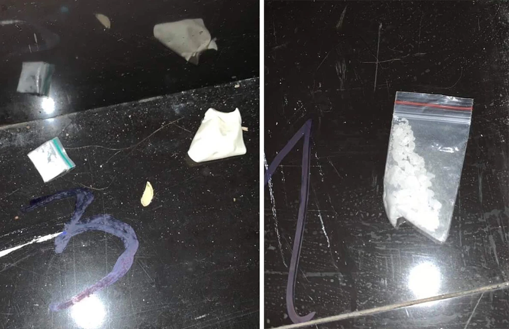 Tại các bàn Vip số 10, 29, 31, đoàn liên ngành phát hiện nhiều túi nylon chứa tinh thể màu trắng, được xác định là ma túy. Nhiều viên nén nghi là thuốc lắc… cũng được phát hiện. Một phụ nữ 45 tuổi (ngụ quận Gò Vấp) cũng bị phát hiện có một viên nén màu hồng nghi thuốc lắc trong người.