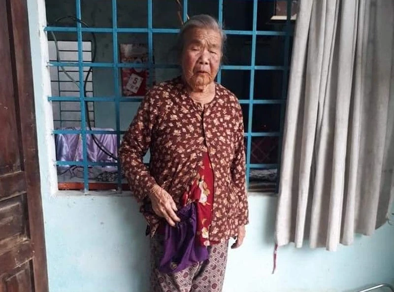 Cụ An tá hoả phát hiện túi đựng tiền, vàng của mình bị kẻ gian rạch lấy sạch. Ảnh: CTV
