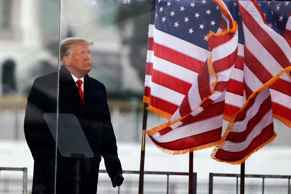 Tổng thống Donald Trump phát biểu trước đoàn người biểu tình gần tòa nhà Quốc hội hôm 6-1. Ảnh: REUTERS