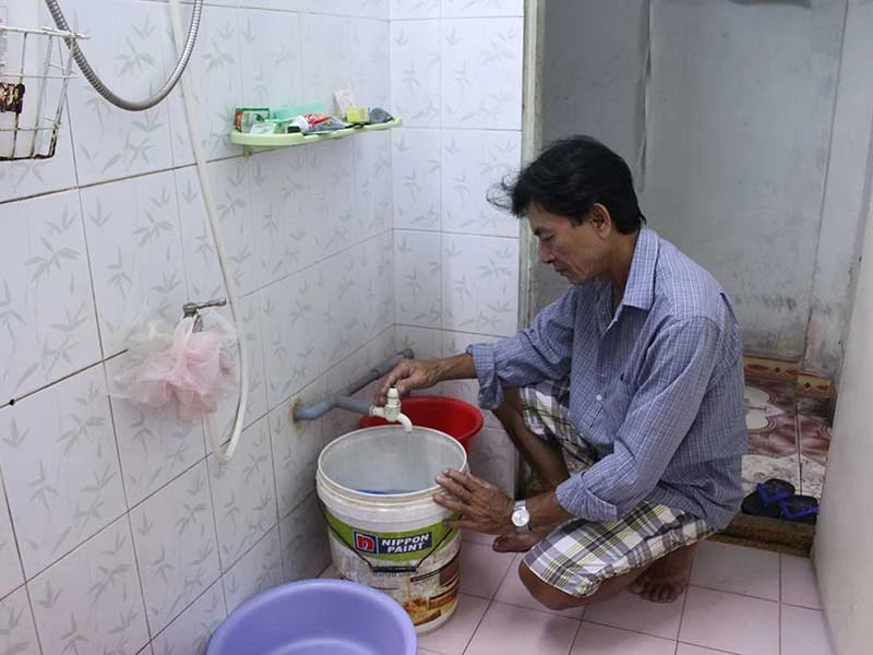 Ông Vũ Quang, tổ 220, đường Sương Nguyệt Anh, phường An Hải Bắc, cho biết suốt một thời gian dài người dân tại đây phải đi xin từng xô nước sinh hoạt. “Nước mất triền miên, bởi vậy mới có chuyện có người phải đi 7 km để tắm nhờ hay nhiều người nhịn đi vệ sinh vì không có nước. Mấy hôm nắng nóng đỉnh điểm, chúng tôi thường phải chầu chực đến 3 giờ sáng để bơm nước” - ông Quang nói.