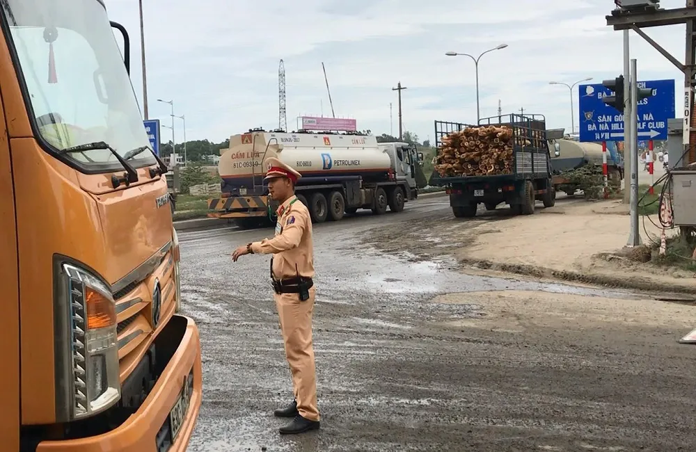 Chặn xe vì quá ô nhiễm bụi. Ảnh: HẢI HIẾU