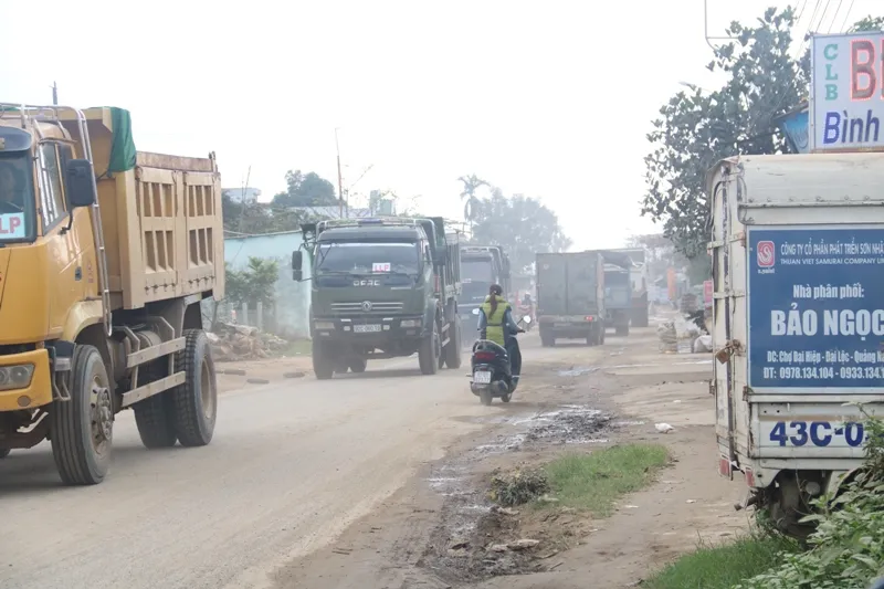 “Ngán nhất là qua đoạn này, xe cộ thì chạy liên tục, bụi tấp vào cả người dày đặc” - ông Nguyễn Sơn (28 tuổi, ngụ thôn Thích Phú, xã Đại Hiệp) nói.