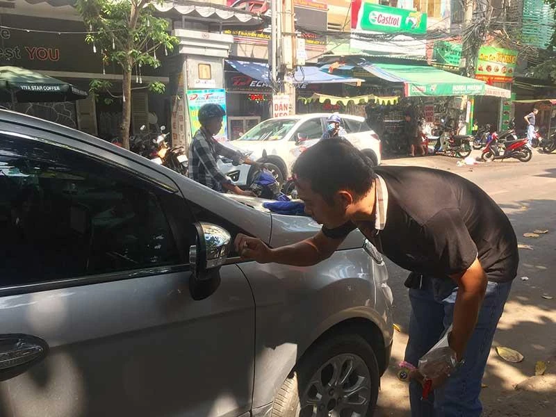 Anh Minh Hùng (nhà ở quận Tân Bình, TP.HCM) có “con xe” Vios màu trắng. Nhưng vợ anh bảo màu trắng vừa dơ vừa không hợp với tuổi vợ chồng. Anh Hùng đem đi dán decal màu xám lông chuột toàn thân xe và sau đó bị bên đăng kiểm từ chối xét xe theo chu kỳ.
