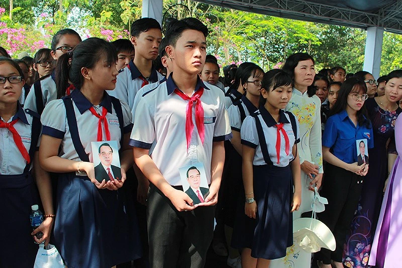 Các em học sinh mang di ảnh cố Thủ tướng đén đưa tiễn ông về nơi an nghỉ