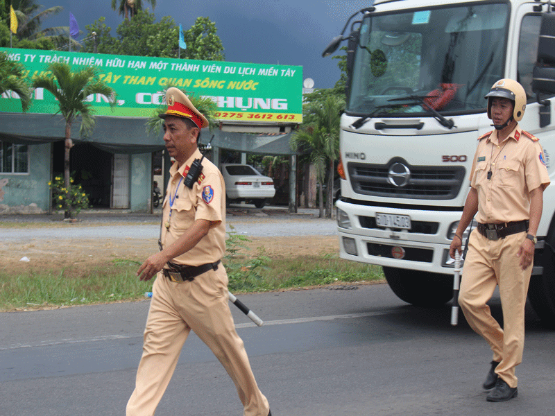Do lượng phương tiện di chuyển trên tuyến rất đông, vào khoảng 12 giờ 30 trưa 28-4, CSGT đã chốt chặn một chiều từ Bến Tre đi Tiền Giang, cho lưu thông một chiều trên cầu Rạch Miễu hướng Tiền Giang đi Bến Tre giải tỏa lượng phương tiện trên tuyến.