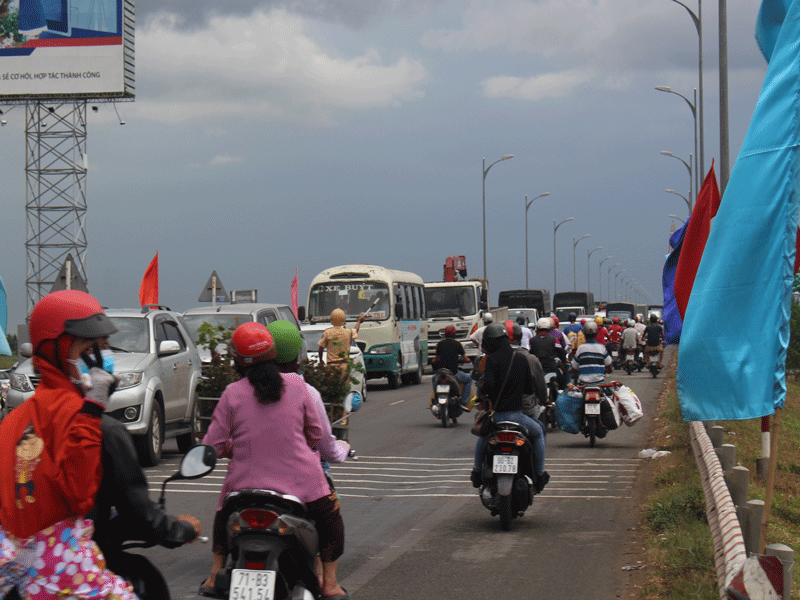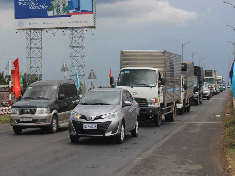 Cầu Rạch Miễu quá tải vào trưa 28-4.