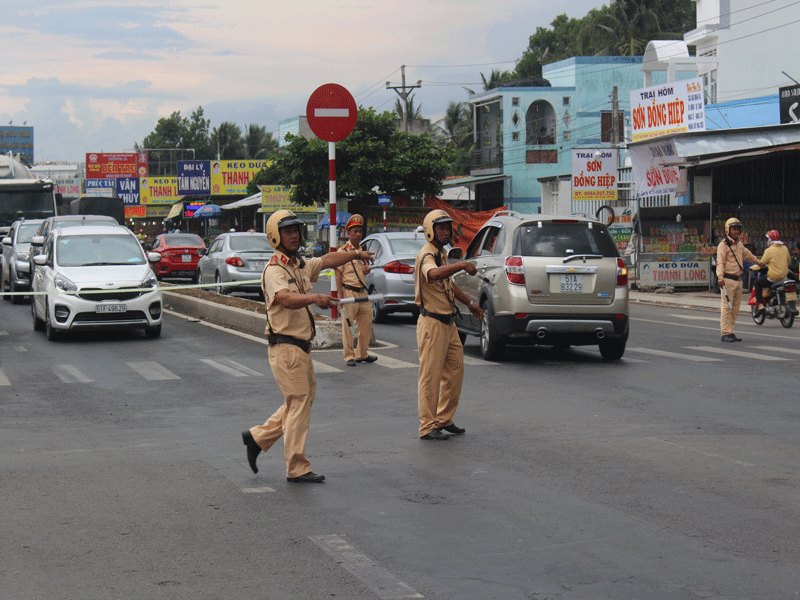 CSGT rất vất vả làm nhiệm vụ tại khu vực cầu Rạch Miễu dịp lễ.