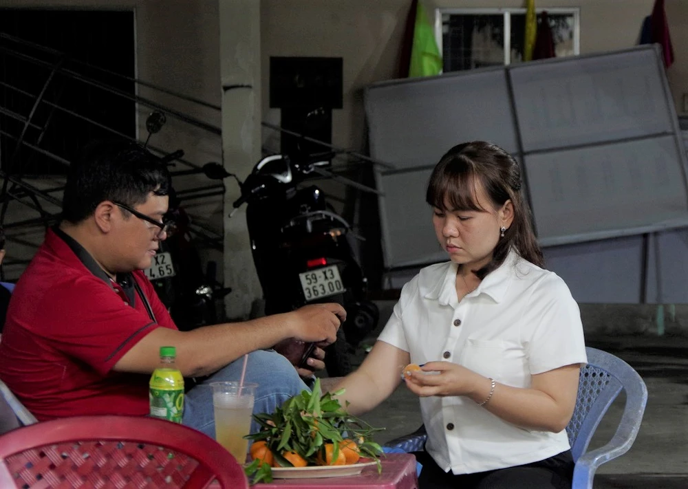“Không bao nhiêu cả nhưng bà con trò chuyện với nhau trong lúc chờ, ăn miếng trái cây cho vui vẻ, thoải mái thì cũng khiến anh em trong đội thấy vui hơn”, một cán bộ công an tại điểm làm CCCD chia sẻ.