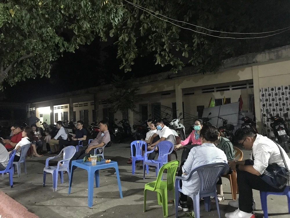 Sau 21 giờ, điểm cấp CCCD tại phường Linh Trung vẫn đông người đến. Ảnh: THANH TUYỀN