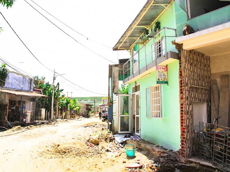 Đa số nhà của các hộ dân trên đường Nguyễn Huy Tưởng, phường Hòa Minh, quận Liên Chiểu, TP Đà Nẵng đều bị đập đi một phần để làm đường. Ảnh: N.TRI
