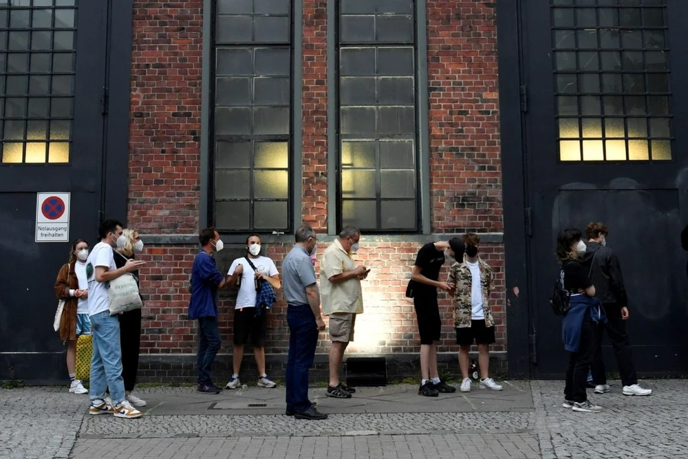 Người dân xếp hàng chờ tiêm vaccine ở Berlin (Đức). Ảnh: REUTERS