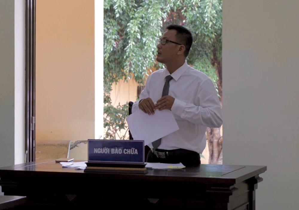 Luật sư trình bày với HĐXX về việc lấy lời khai nhân chứng Trúc Linh. Ảnh: HD