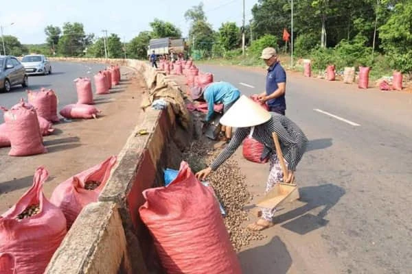 Ngày 4-5, hàng chục người dân hai bên đường ĐT741, đoạn qua ấp Thuận Hòa 2 (xã Thuận Lợi, huyện Đồng Phú, Bình Phước) đã tập trung giúp tài xế xe container thu gom hạt điều bị đổ tràn ra đường.