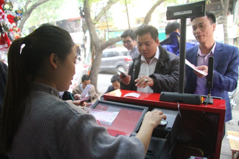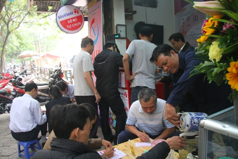 Theo ghi nhận của PV, không khí tại các điểm bán vé Vietlott khá nhộn nhịp.