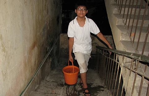 Cư dân khu tập thể Thành Công (Ba Đình) phải đi xin nước về dùng. Ảnh: HOÀNG VÂN