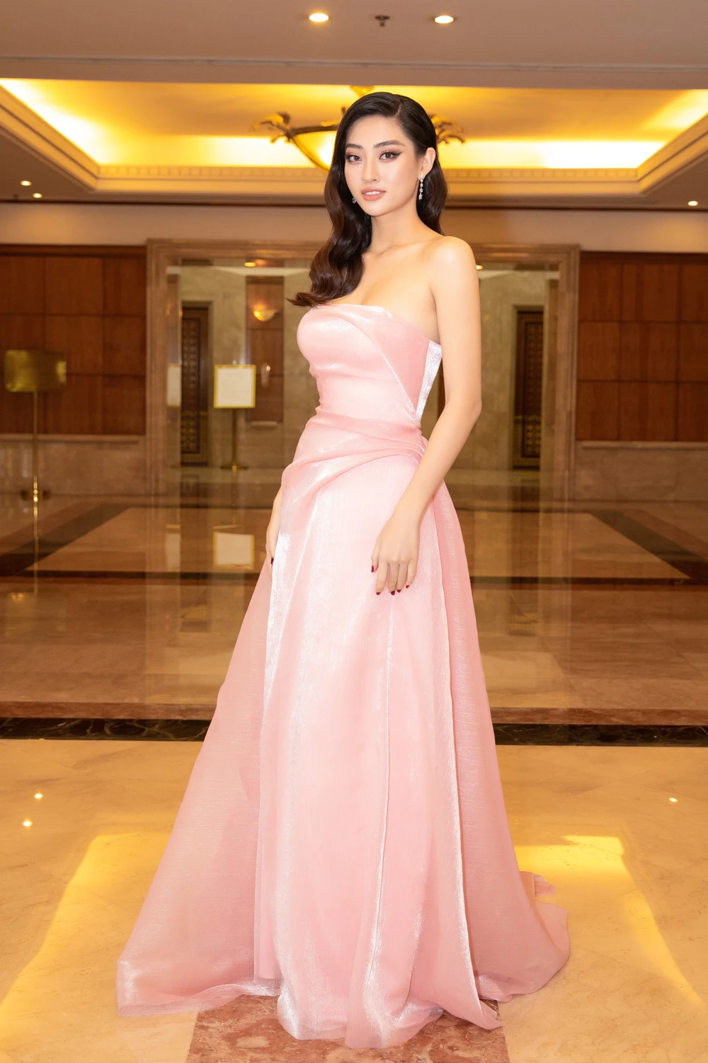 Sở hữu chiều cao 1m78, Hoa hậu Lương Thuỳ Linh vẫn trở thành tâm điểm khi xuất hiện trong sắc hồng nhẹ nhàng.