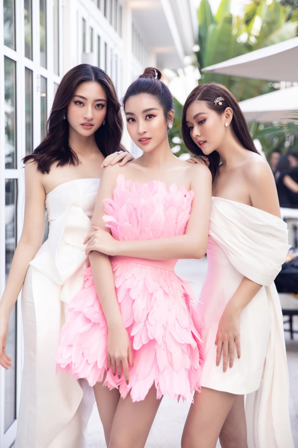 Là những tín đồ về sắc đẹp, ba nàng hậu không những không bỏ lỡ mà còn đến tham dự với hình ảnh xinh đẹp và đầy nổi bật. Giữa sự kiện quy tụ đông đảo dàn nghệ sĩ Việt, các nàng hậu lại càng trở nên thu hút khi khoe vai trần đồng điệu tại sự kiện.