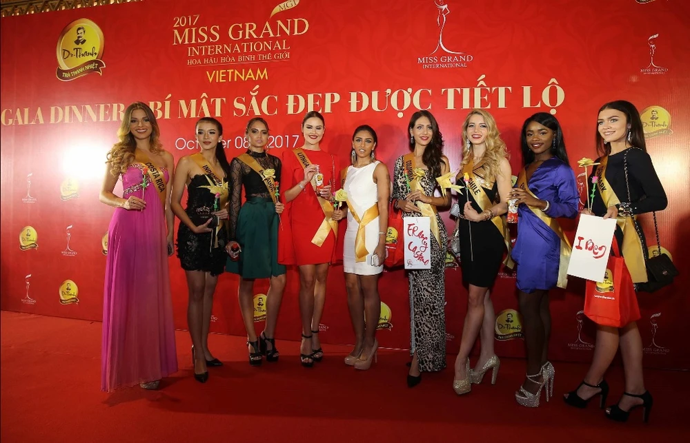 Trước đó, tối 8-10 tại TP.HCM, hơn 80 thí sinh đại diện cho các quốc gia và vùng lãnh thổ tranh tài ở cuộc thi Miss Grand International - Hoa hậu Hòa Bình thế giới 2017 đã tham dự đêm Gala Dinner với chủ đề “Bí mật sắc đẹp được tiết lộ” do Trà thanh nhiệt Dr Thanh tài trợ.