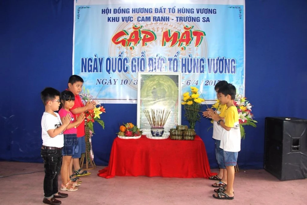 Các cháu thiếu nhi Cam Ranh và Trường Sa dâng hương tưởng nhớ vua Hùng.