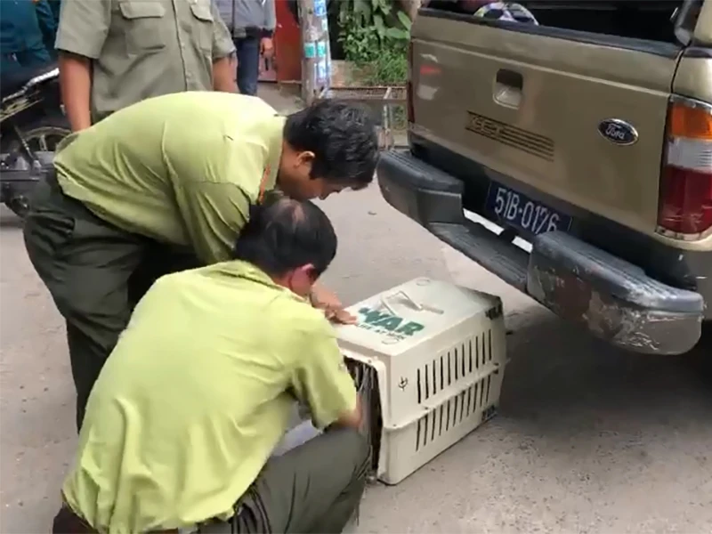 Hiện lực lượng chức năng đã bắt và di dời sáu con khỉ trong đàn khỉ đại náo ở quận 12. Ảnh NT