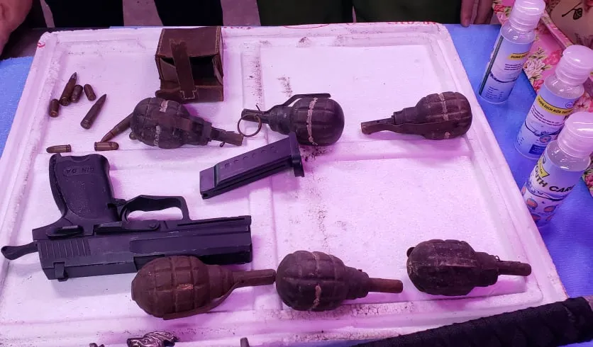 Người dân khu chợ đầu mối nông sản Thủ Đức còn giao nộp cả lựu đạn và súng. Ảnh: Ảnh: TỰ SANG