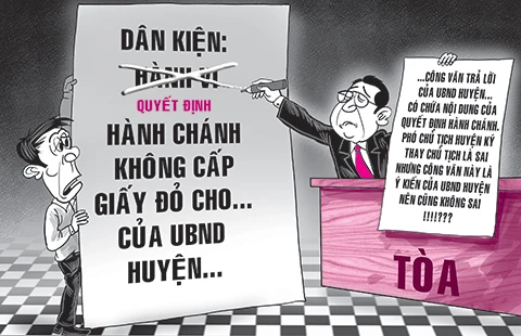 Đầu năm 2014, ông Tẩu khởi kiện HVHC không cấp giấy đỏ cho ông của UBND huyện Hàm Tân. Sau khi thụ lý, TAND huyện Hàm Tân đã tự điều chỉnh lại yêu cầu khởi kiện của ông Tẩu là hủy bỏ QĐHC trong lĩnh vực đất đai (tức công văn của huyện trả lời ông Tẩu nói trên - NV) để giải quyết.