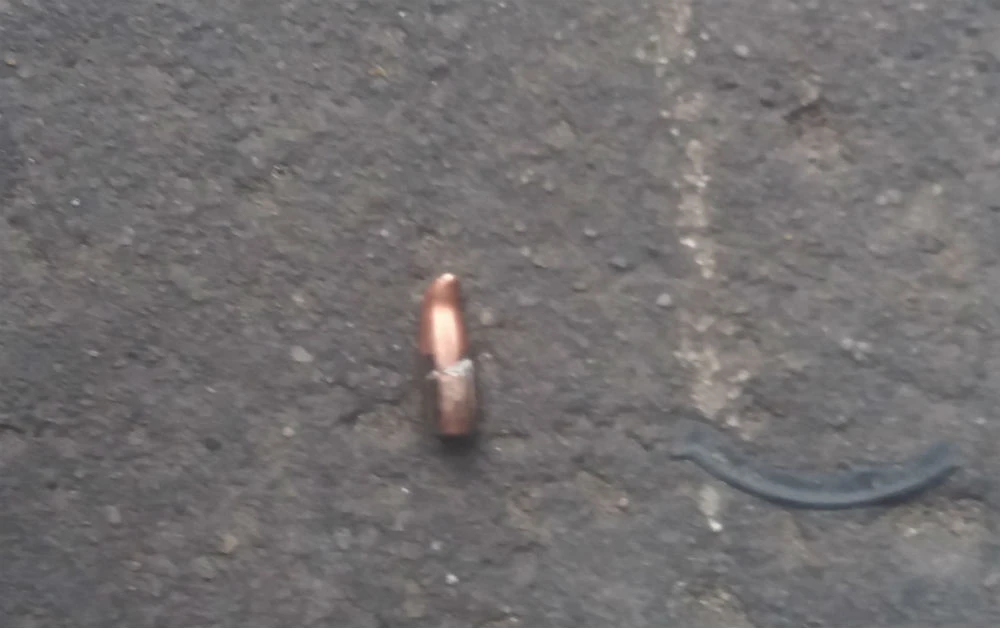 Khoảng 10 giờ cùng ngày, chị Đoàn Minh Thuyến (40 tuổi, quê Thái Bình) và con trai tên Bùi Nhật Thái (4 tuổi) đang ngồi chơi trong căn nhà thì bất ngờ có tiếng nổ lớn làm một phần tấm kiếng trước nhà vỡ nát, rơi xuống nền xi măng. Chị Thuyến vội vàng chạy ra xem thì thấy có một viên đạn đã bể đầu rơi trên nền nhà, ngoài đường vắng người qua lại và không có biểu hiện gì bất thường.