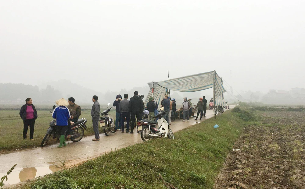 Người dân lập chốt chặn xe rác vào bãi rác Nam Sơn.
