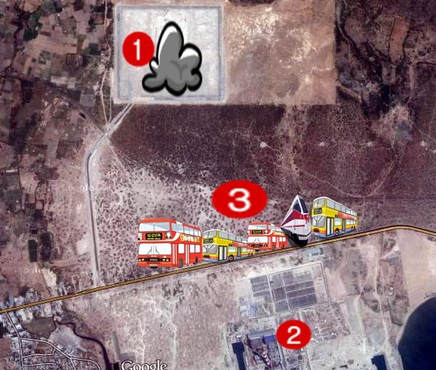 Vị trí số 1 là bãi xỉ, số 2 là Nhà máy và vị trí số 3 là nơi người dân đang chặn xe phản ứng.