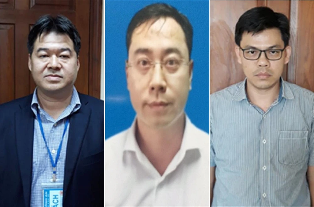 Ba bị can: Nguyễn Hoài Giang, Vũ Mạnh Tùng, Phạm Xuân Quang (từ trái sang).