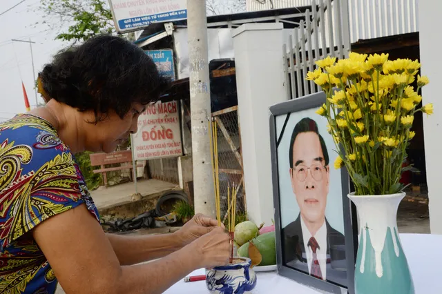 Những bàn thờ trang trọng được người dân lập ngay trước cửa nhà mình chờ đón ông Sáu Khải trở về quê nhà trong chuyến đi cuối cùng. Ảnh: NGỌC KHẢI