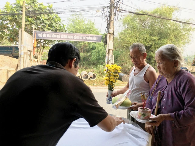 Người dân xã Tân Thông Hội lập bàn thờ ông Sáu Khải. Ảnh: TIẾN LONG