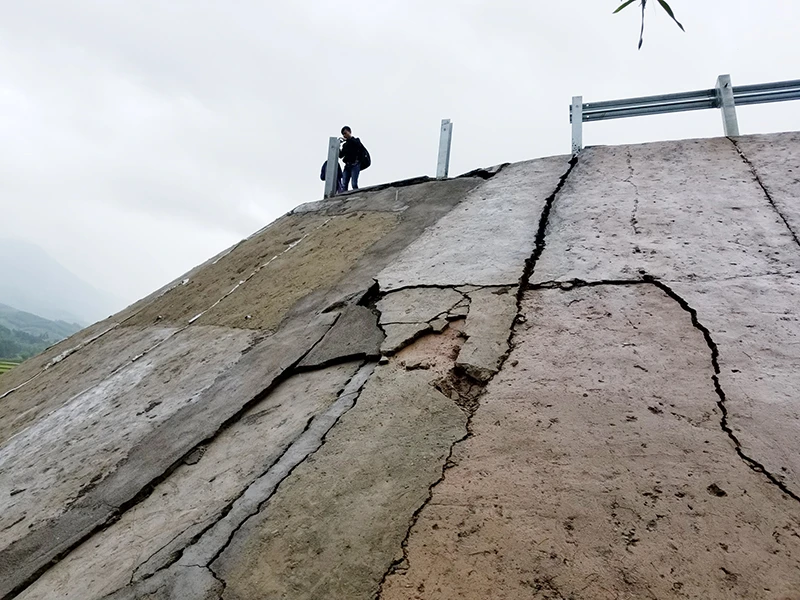 Mảng taluy bị nứt ngang như đang chờ đổ sập xuống. Ảnh: THANH NHẬT
