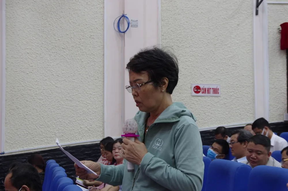 Cử tri Trần Thị Xuyến bày tỏ sự bất an khi nhắc về việc đã mua đất, cất nhà 20 năm nhưng vẫn chưa được cấp giấy chứng nhận. Đến giờ thì chủ đầu tư đã bán qua tay rất nhiều người, rồi bán cho xã hội đen.