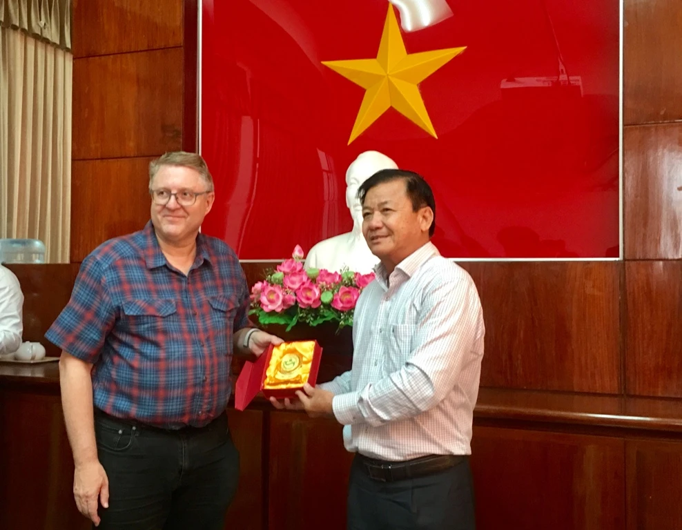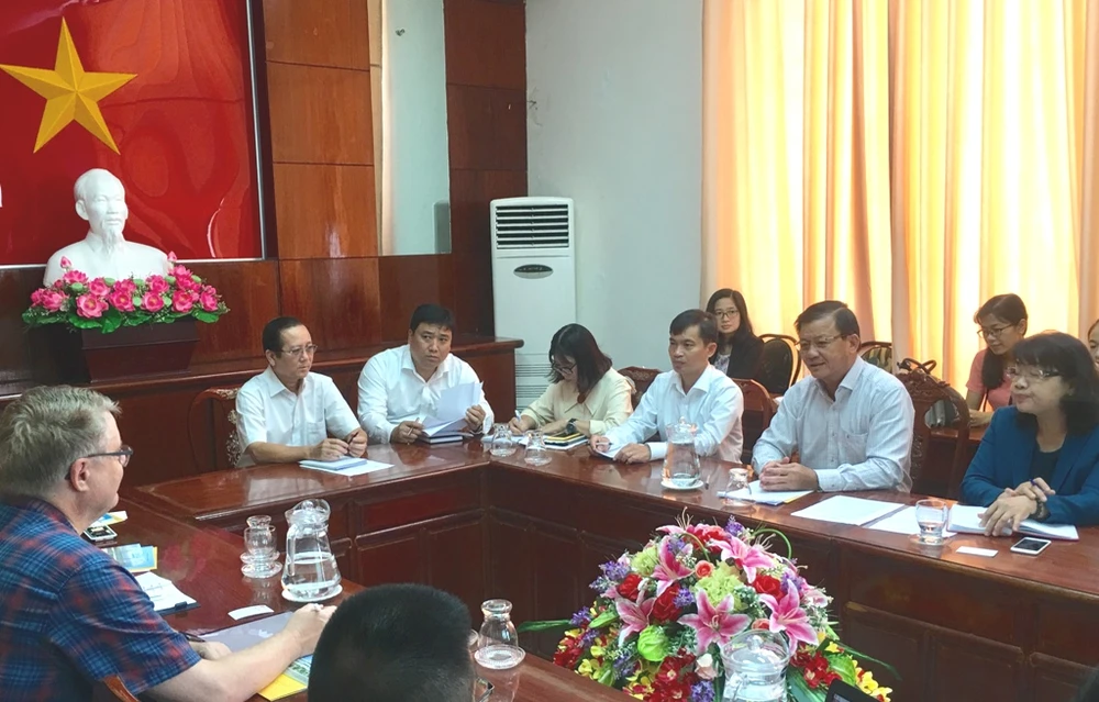 Đoàn công tác của Đại sứ quán Đan Mạch làm việc tại Cần Thơ ngày 2-7. Ảnh: NHẪN NAM