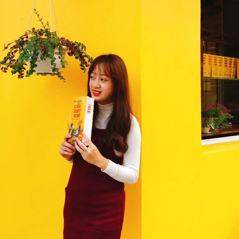Bức tường vàng tạo nên sự cuốn hút cho bức hình.