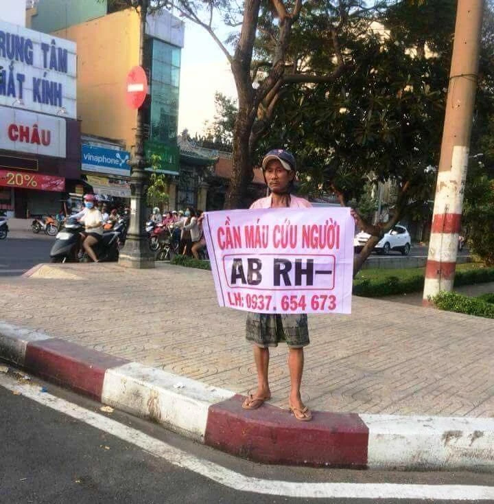 Gần đây, trên mạng xã hội chia sẻ hình ảnh một người đàn ông đứng ở ngã tư, trên tay có tấm biển "cần máu cứu người AB RH-". Hình ảnh này đã nhận được sự quan tâm của cộng đồng mạng.