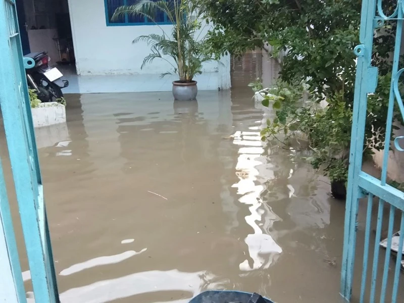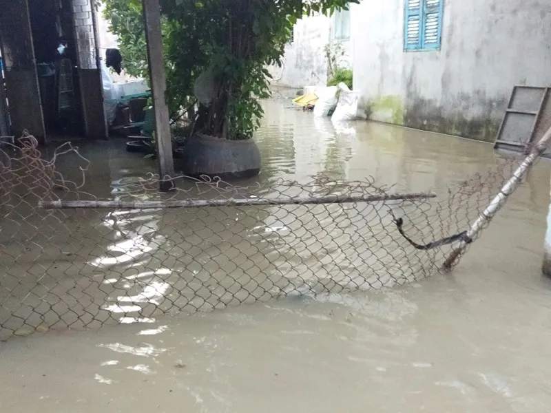 Nước tràn sâu vào trong nhà khiến các hộ dân phải chạy triều cường. Ảnh: CTV