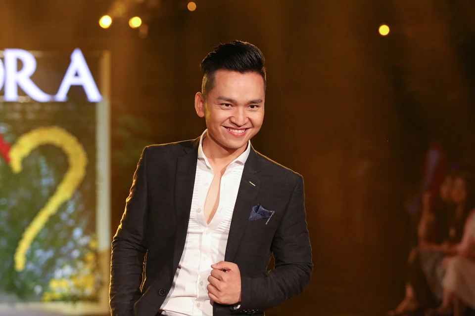 MC Hạnh Phúc diện suit lịch lãm. Ngoài các màn diễn thời trang, chương trình còn đấu giá các vật phẩm để gây quỹ từ thiện.