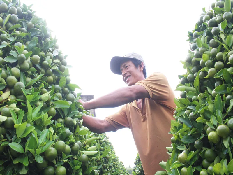 Mùa kiểng tết năm nay, gia đình anh Nguyễn Văn Thành (ấp Vĩnh Chính, xã Vĩnh Thành), sản xuất gần 100 chậu kiểng tắc hình cây thông. Tuy còn hơn một tháng nữa mới đến tết nhưng toàn bộ sản phẩm kiểng tắc của anh Thành đã có người đặt hàng hết.