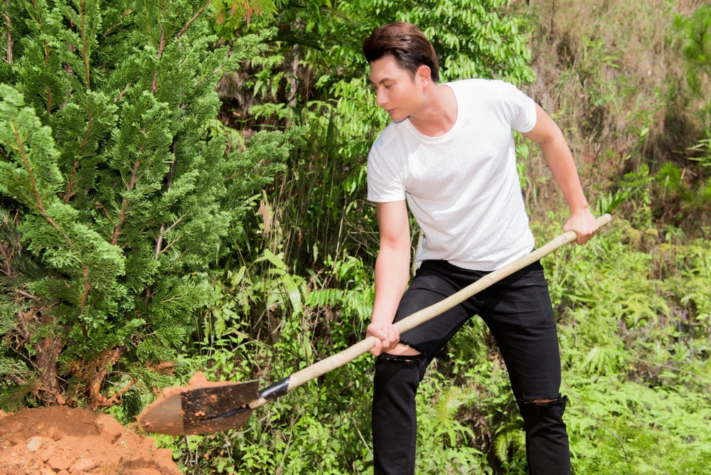 Rũ bỏ những bộ váy đầm hàng hiệu, sang trọng, gương mặt được trang điểm tinh xảo trên các sàn diễn thời trang trong nước và quốc tế, hình ảnh những người đẹp giản dị quần bò áo phông xúc đất, trồng cây, tưới nước …đẹp hơn bao giờ hết.