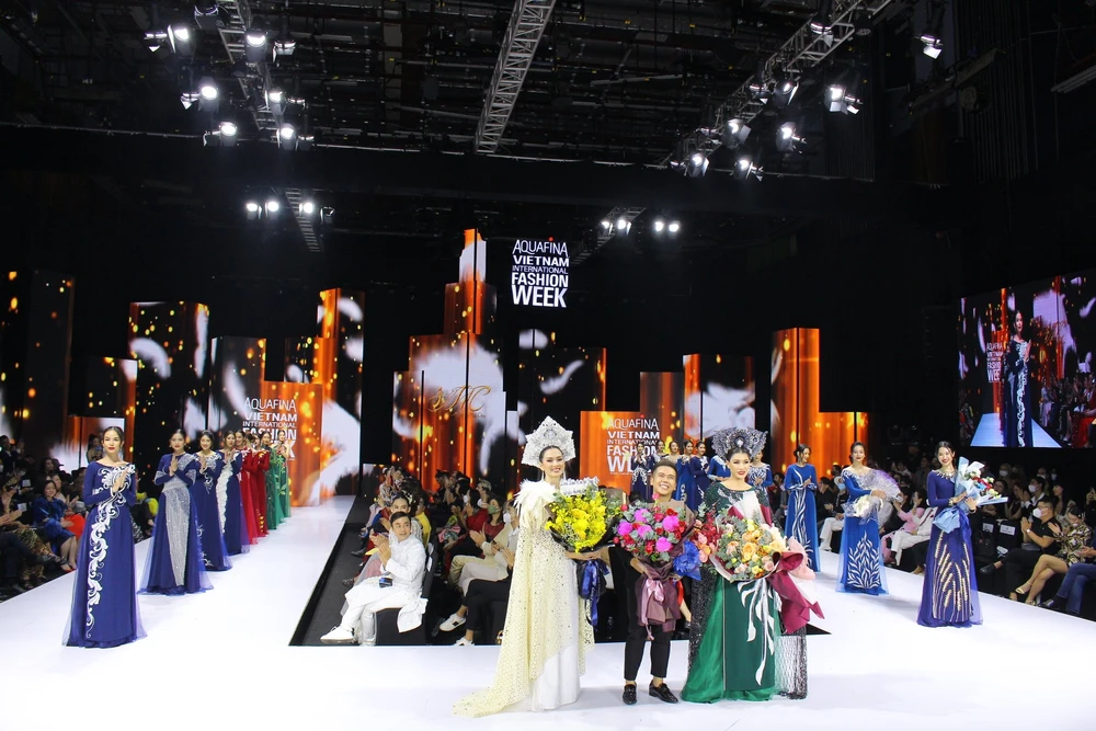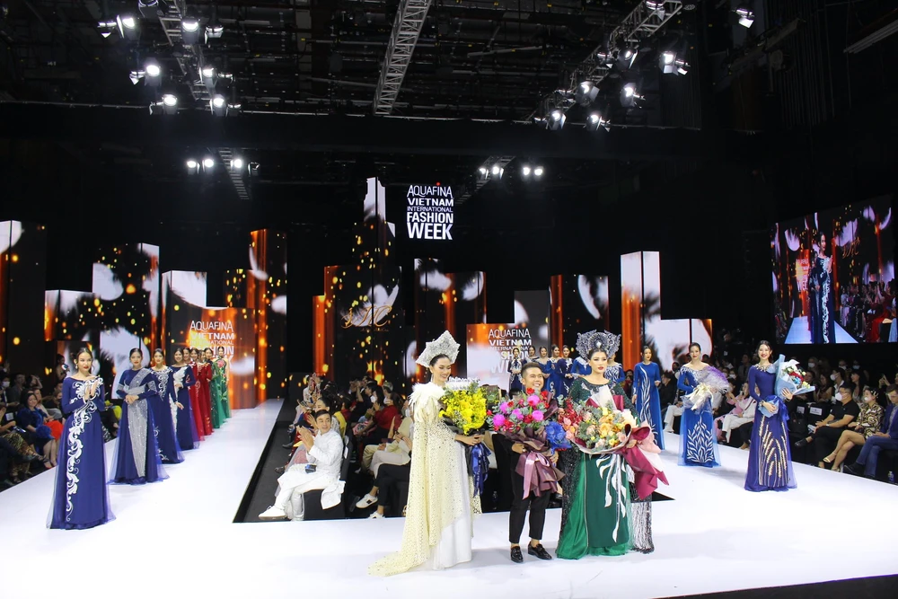 BST của NTK Minh Châu là một nhấn đặc biệt trong đêm thứ 2 của Tuần lễ thời trang quốc tế Việt Nam 2021. Ảnh: GIANG LAM