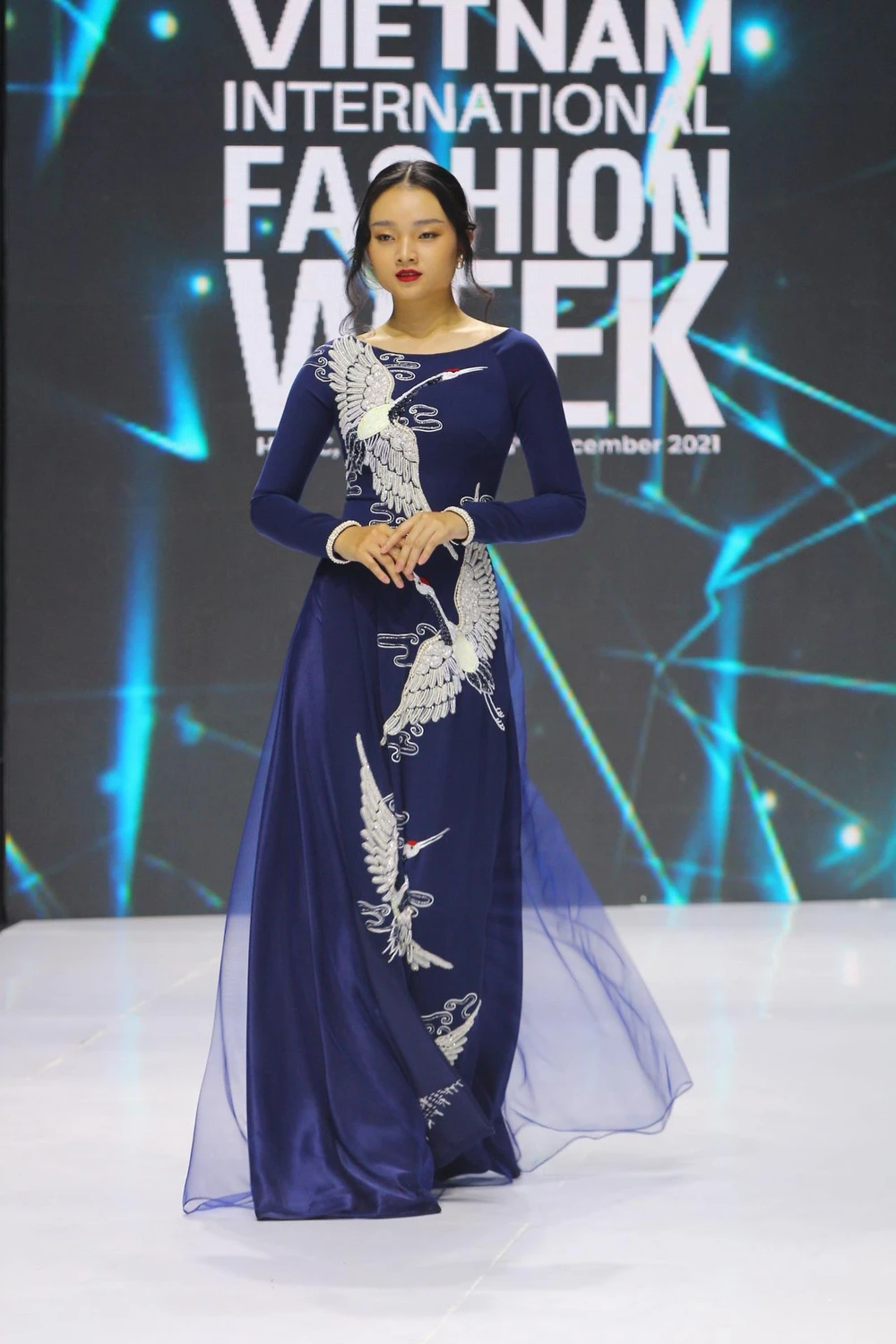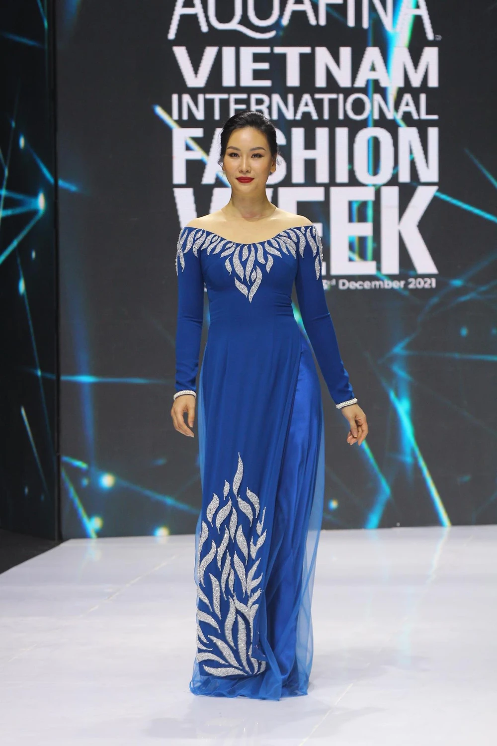 BST áo dài mang tên “Hồi sinh” vừa tôn vinh vẻ đẹp của người phụ nữ, vừa truyền tải thông điệp ý nghĩa: Sự hồi sinh không chỉ trong thời trang, mà còn chính trong mỗi người con nước Việt. Ảnh: GIANG LAM
