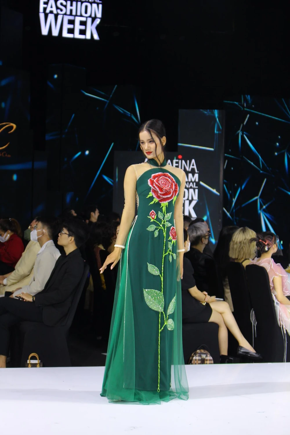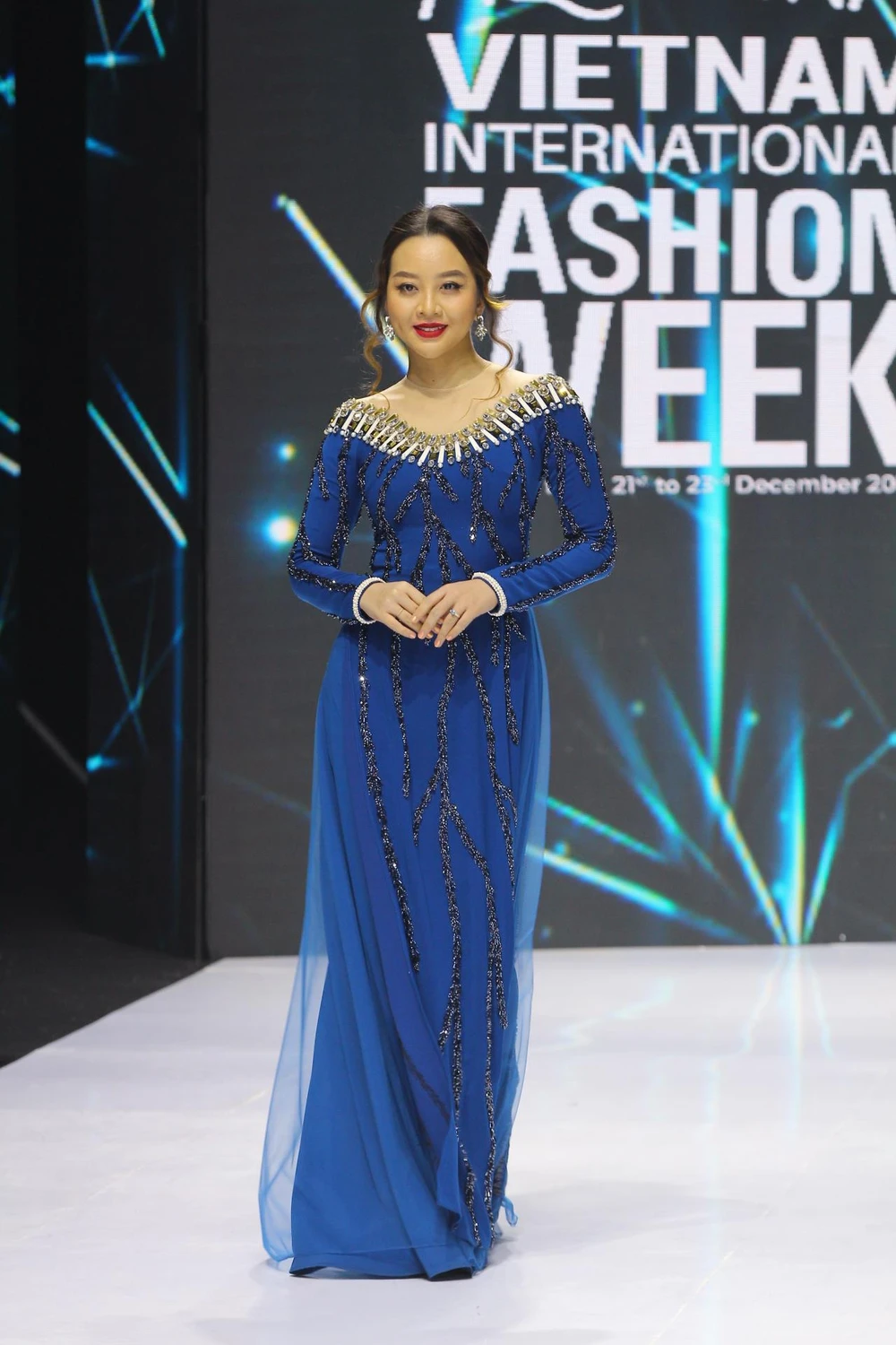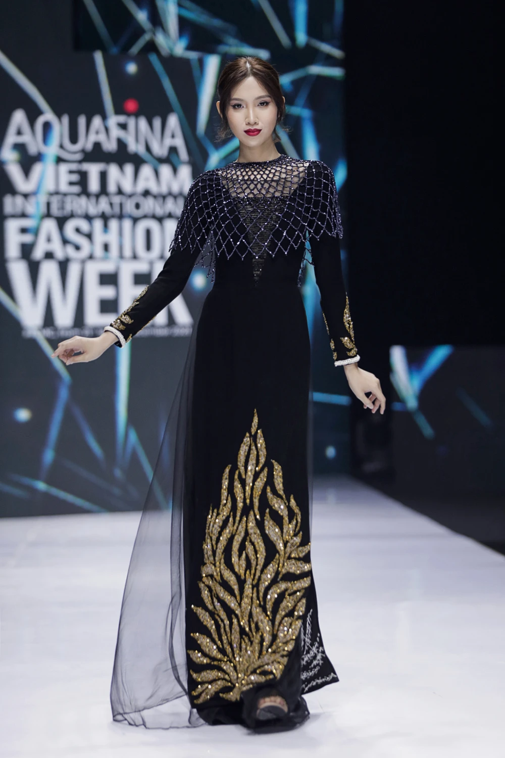 Trước sự bùng nổ rực rỡ sắc màu hiện đại của các BST, NTK Đặng Trọng Minh Châu đã cho thấy tài năng biến hóa của mình khi lựa chọn tà Áo dài truyền thống trở thành “Nàng thơ” mang hơi thở hiện đại.